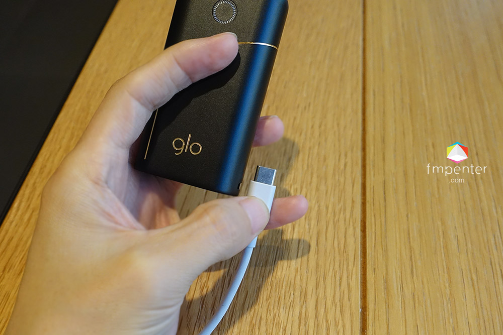 글로 프로(glo pro)의 충전은 디바이스 전면 기준 우측 아래에 위치해 있습니다. 상단 커팅라인 짧은 쪽 밑에 위치해 있습니다.