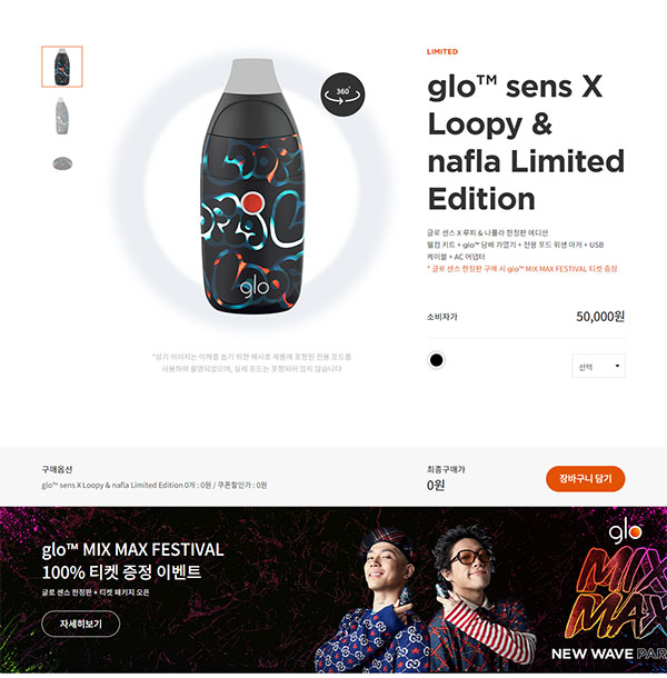 루플라 한정판 에디션 구매 이벤트 glo MIX MAX FESTIVAL NEW WAVE PARTY II 티켓 응모 이벤트는 선탁순 1,000명에게 드리는 이벤트이니. 기기와 함께 행운을 얻으려는 소비자. 서두르세요.
