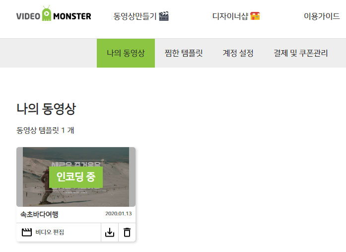 제작된 동영상은 수정 편집할 수 있으며. 다운로드 기능을 지원합니다.