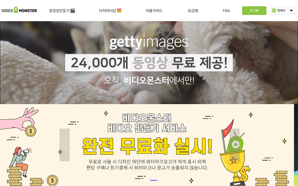 ‘비디오 몬스터’는 영상 제작 툴을 몰라도 누구나 웹에서 전문가 수준의 광고 홍보 영상 급의 제작물을 제작할 수 있는 솔루션 무료 동영상 편집 프로그램 사이트입니다.