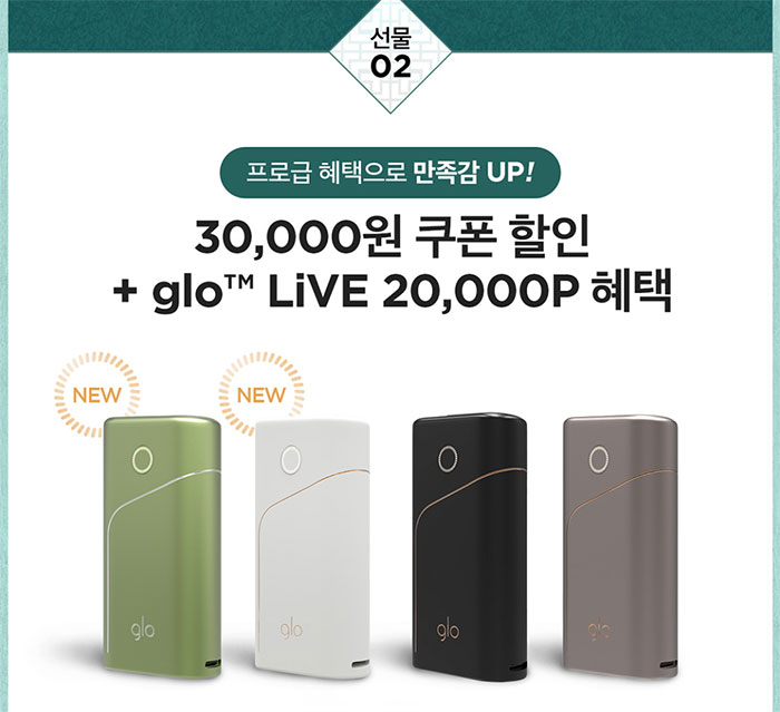 글로 프로 신상 컬러 2종이 출시됐습니다. 기존 블랙 컬러와 골드 컬러의 프리미엄 이미지 바디 컬러에 화이트 컬러와 피스타치오 컬러가 추가 출시돼 선택권은 넓어졌습니다.