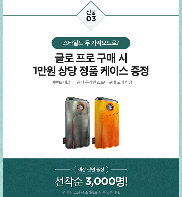무엇보다 반가운 건 글로 프로 구매 시 1만원 상당의 제품 전용 정품 케이스를 증정한다는 점입니다.