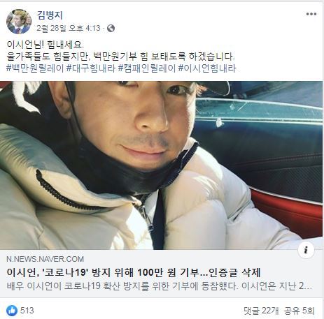 마음은 기부를 하고 싶어도. 몇 십만 원 냈다고 비난받을까. 100만원 냈다고 이시언처럼 비난받을까, 연예 스타들은 주저하기 시작한 것이다.