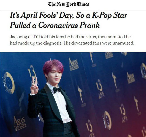 김재중은 분명 쳐서는 안 될 만우절 장난을 쳤다. 그러나 그 장난을 심층 취재하지도 않고 팩트체크 없이 실시간으로 확진 보도를 한 언론은 김재중의 장난보다 더 심한 비난을 받아 마땅하다.