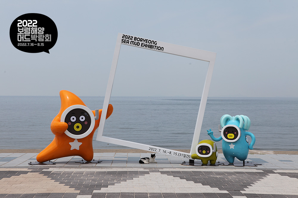 또 보령을 찾는 여행자라면 2년 후 열릴 ‘2022년 보령해양머드박람회’의 캐릭터 이름도 알아 두면 좋을 것 같아 먼저 배치해 봤습니다. 위 포토 프레임 기준 상 왼쪽부터 토니-꾸니-자리입니다.