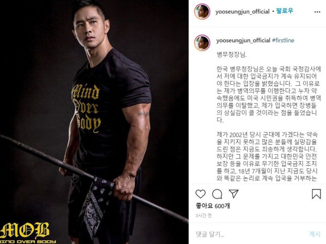 지난해 9월 대법원은 “유승준에 대한 비자발급 거부가 비례원칙에 어긋난 과도한 처벌”이라고 판시한 바 있다.