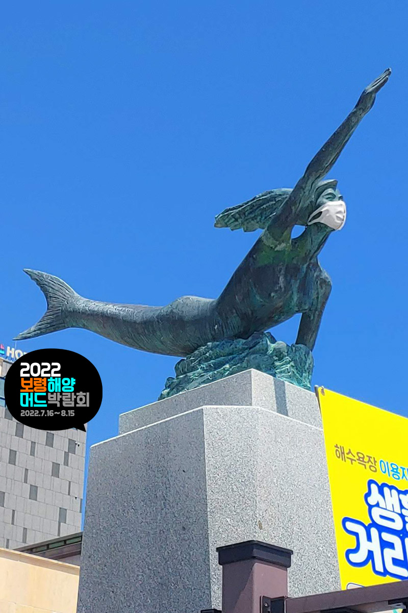 머드축제가 열리는 광장엔 마스크 쓴 조형물 님도 계십니다.
