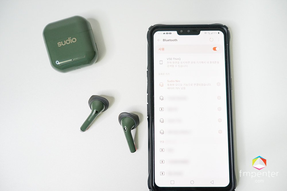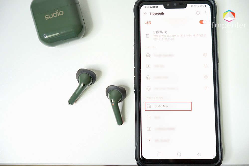블루투스 기기이니만큼 페어링은 쉽게 쉽게 등록이 되어야 하는데. 인식률이 좋습니다. 블루투스 5.0입니다. 기기 찾기 하면 빠르게 찾아 등록할 수 있습니다. Sudio nio로 위와 같이 찾아집니다.