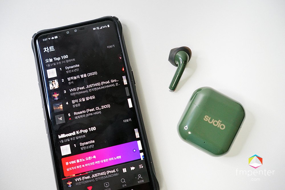 수디오 니오는 최근 유행하는 디자인 경향에 뒤쳐지지 않는 디자인으로 윙팁(이어팁)의 모양이 독특하고 예쁩니다. 무엇보다 귀 속에 밀착되어 느낌이 좋습니다. 귓바퀴 안쪽 모양에 딱 맞는 스타일의 윙팁은 노이즈 차단에서도 도움을 주더군요. 밀착도도 좋고 ‘적응형 듀얼 마이크로폰 기술’을 통해 배경 소음을 걸러 내주니 만족도는 높습니다.