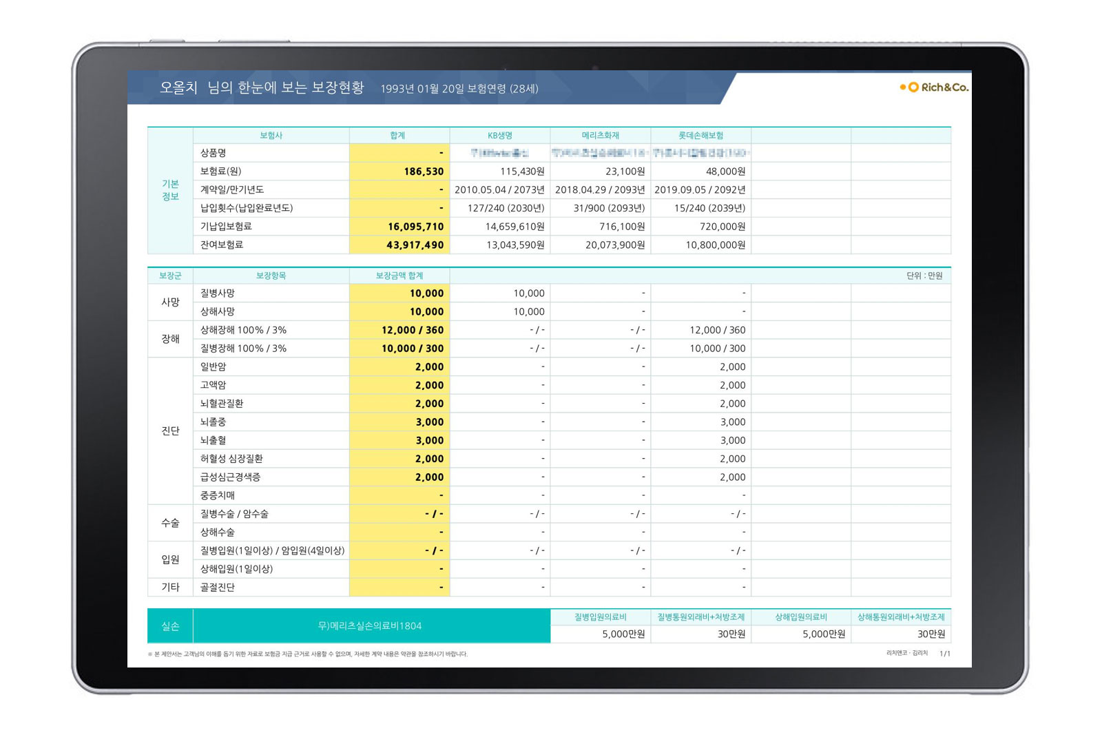 고객의 보험가입 내역들을 뽑아 설계사가 터치 몇 번으로 한눈에 확인시켜 주고. 비교와 분석/설계를 효율적으로 할 수 있게 지원합니다.