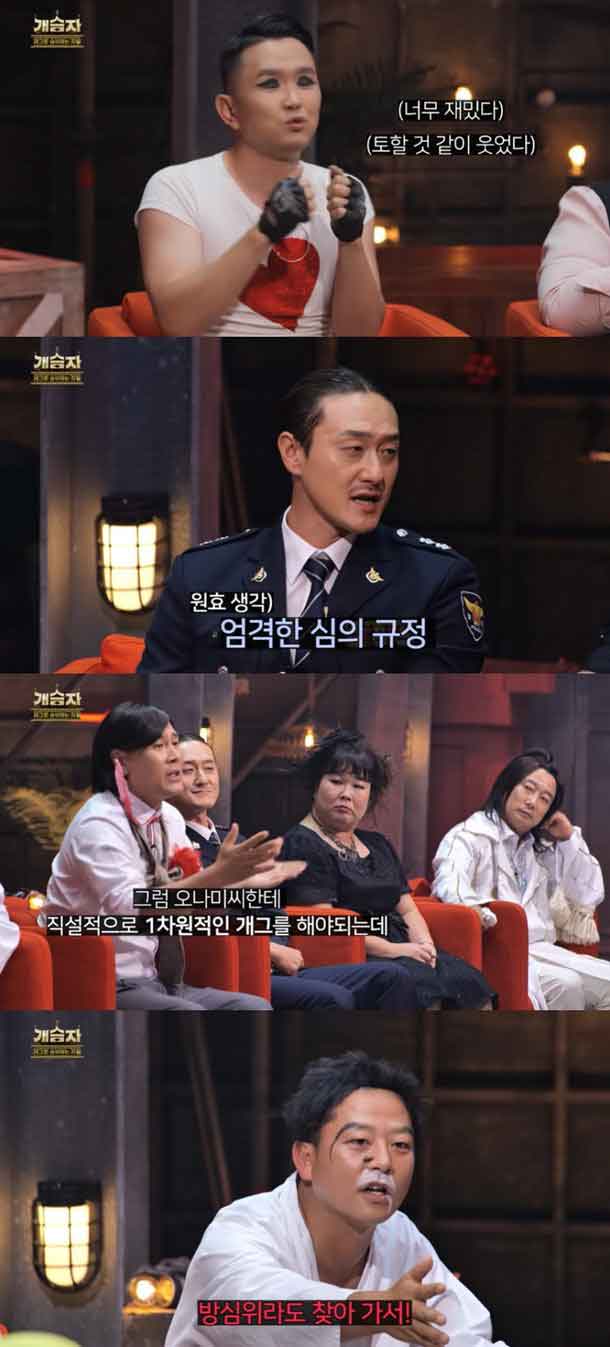 예능 프로그램 ‘개승자’에서 김준호를 비롯. 김원효, 변기수가 개그 프로그램에 대한 과한 도덕적 잣대 지적에 대한 애로사항을 토로했다.