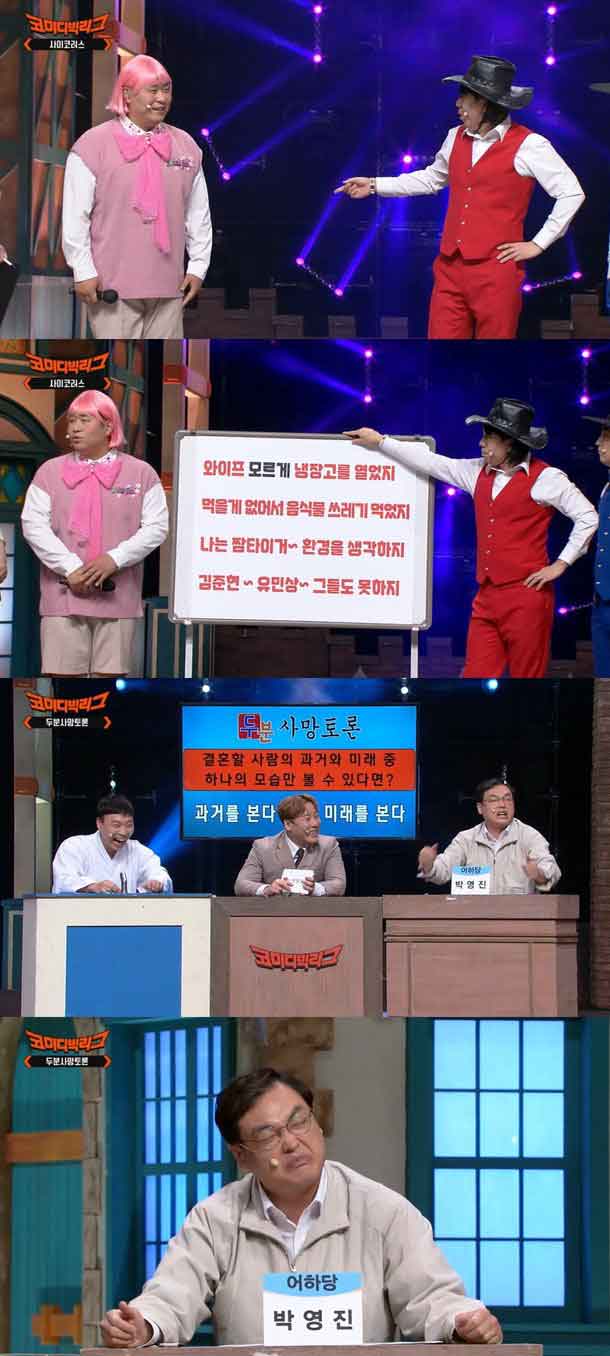 김준호는 “방송통신심의위원회라도 찾아가 1인 시위를 하겠다”고 공감을 표하는 장면이 나왔다. 김준호는 이어 “KBS가 더 빡빡하지 않냐? 옛날에 박준형이 개그는 개그일 뿐 오해하지 말자고 했다. 지금은 개그를 다 비하로 본다. 비하할 의도가 없다”고 한 것.
