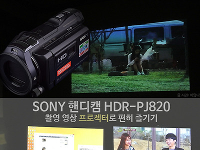 소니 핸디캠 HDR-PJ820 가지고 놀기에 빠진 바람나그네. 이번 시간 가지고 놀 종목은 '프로젝터 즐기기' 입니다. 이 종목은 의외의 재미를 가져다 주는 종목이기도 합니다. 없으면 못 써도 있으면 언젠가는 쓴다는 그런 말을 하고 싶은 기능이기도 하죠. 또 있어도 사용하지 않으면 무용지물이니 사용해 보라며 추천드리고자, 기능을 설명하는 것이기도 합니다. 평소 프로젝터 기능은 여러 장소에서 보셨을 테고, 저 같은 경우도 방송사 제작발표회 가면 의례히 프로젝터로 시연 영상을 보고는 합니다. 그 외 여러 행사 또한 프로젝터를 이용하죠. 그 기능을 제가 어렵지 않게 쓸 수 있으니 이 기능이 좋아 설명드리는 것이랍니다. PJ820의 프로젝터 기능은 여러 가지로 편리함을 주는데요. 그 중 특히나 눈에 띄는 기능은..